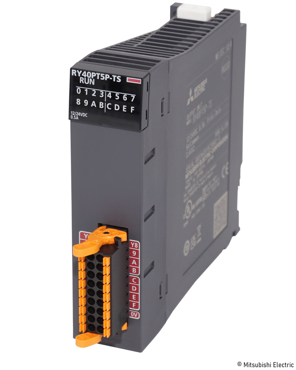 iQ-R razširitveni digitalni modul, DC izhodni modul (12/24V DC), 16 digitalnih izhodov, tranzistorski izhodi, source logika izhodov, terminal z vzmetnimi objemkami